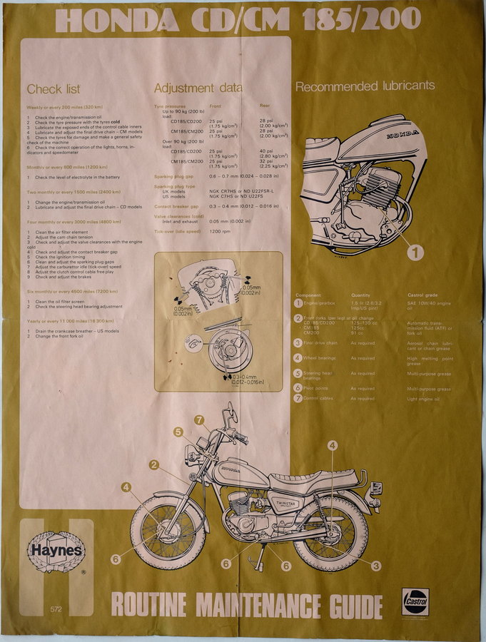 HAYNES ROUTINE MAINTENANCE GUIDE for HONDA CD/CM 185/200 TWINSTAR Motorcycle
