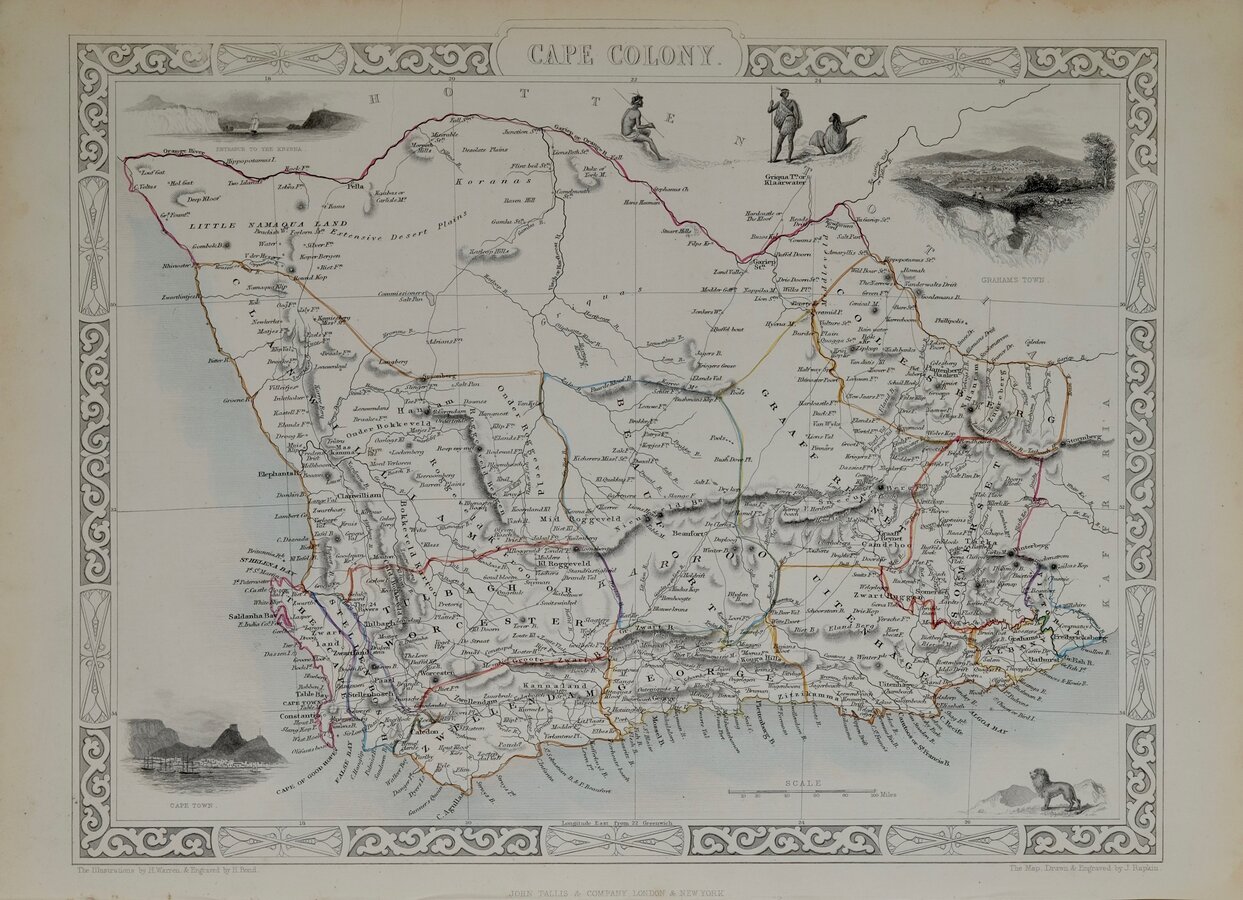 Drawn and engraved on steel by John Rapkin (1813-1899), born in Southwark, the son of George Rapkin, a shoemaker and his wife, Elizabeth Harfy. John Rapkin’s brother, Richard, also became an engraver and another brother, William Harfy Rapkin became a copperplate printer. Rapkin married Frances Rudall in 1837 and they are recorded living in Clerkenwell in 1851 with eight children. By 1861, the family, now even larger, had moved to Argyll Square and later to Brixton. He traded as “John Rapkin & Son” 1867-1883 and “John Rapkin & Sons” by 1887. He died aged 85 shortly after the death of his wife of over sixty years. His sons John Benjamin (1837-1914), Alfred Thomas (1841-1905), Joseph Clarke (c.1846-1912) and Frederick William (1859-1945) all became engravers and the Rapkin firm continued into the 1970’s. The vignettes for the series were drawn and engraved by various hands. The maps were first published in parts from the end of the 1840's and issued as a complete volume, The Illustrated Atlas in 1851. The work was re-issued a number of times until about 1865 and the maps were then used by Montgomery Martin, the author of the text in the Illustrated Atlas, in his British Colonies from 1854. The final appearance of the maps, with vignettes erased from the plate, were in geographical dictionaries and encyclopaedias until about 1880.