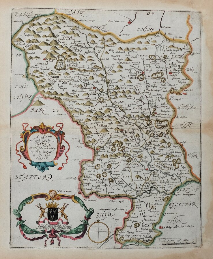 Dedication: To ye Rt Honble Will Earle of Devonshire, Baron Cavendish, of Hardwick Ld Lieutenant of ye County of Darby, This mapp is humbly dedicated by Ric: Blome.
