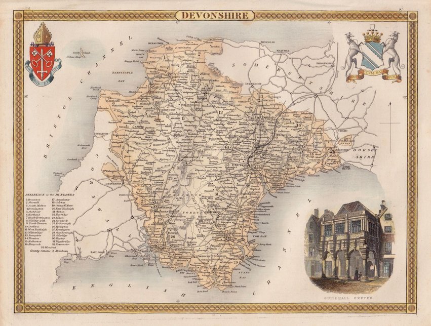 DECORATIVE STEEL ENGRAVING WITH VIGNETTE OF EXETER GUILDHALL