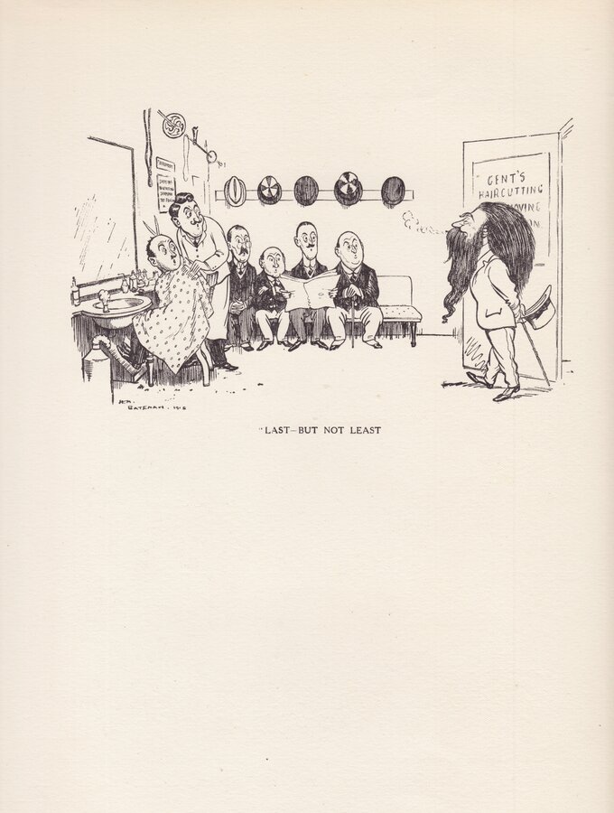 LAST - BUT NOT LEAST verso: LOVE AT FIRST SIGHT: ITS DISTURBING INFLUENCEBy Henry Mayo Bateman (1887-1970) British cartoonist noted for his "The man who..." series of cartoons.Lithograph published in The Punch Almanac for 1922.