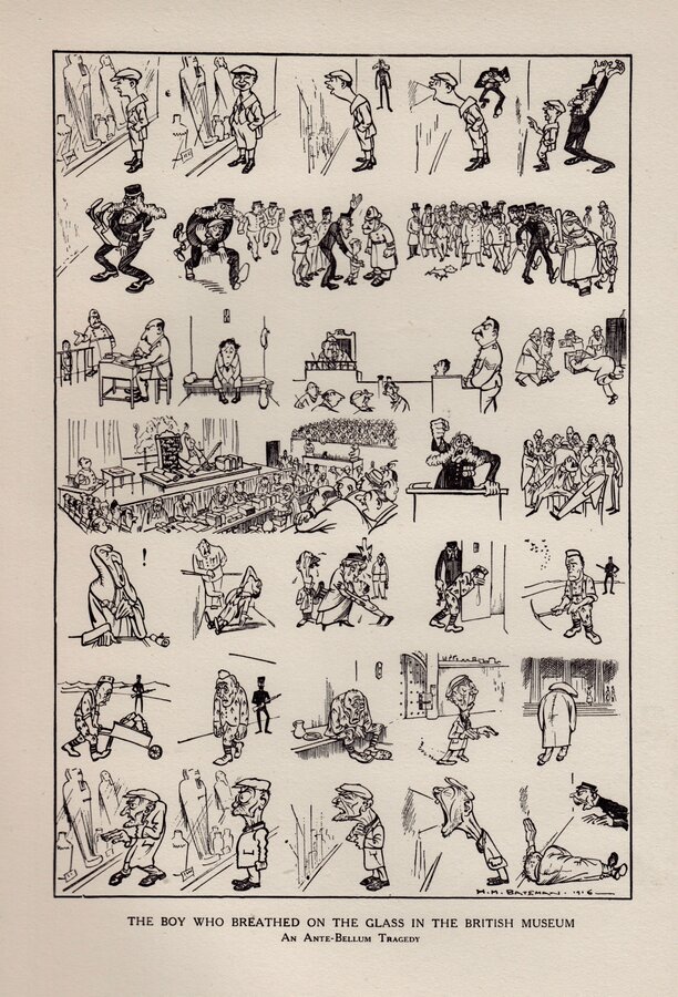 The Boy who breathed on the glass in the British Museum is recorded as his first strip cartoon and was first published in Punch Magazine in 1916.