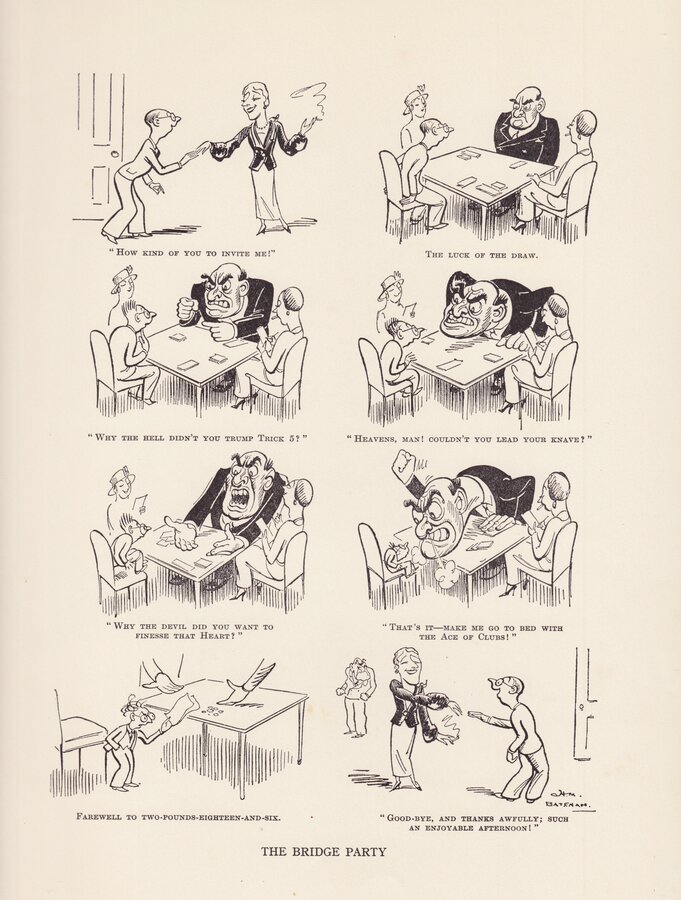 THE BRIDGE PARTYBy Henry Mayo Bateman (1887-1970) British cartoonist noted for his "The man who..." series of cartoons.Lithograph published in The Punch Almanac for 1922.