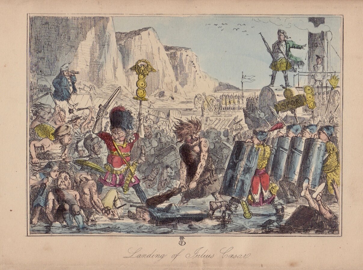 Landing of Julius Caesar Etching by John Leech (1817-1864) published in The Comic History of England by Gilbert Abbott A'Beckett...The Punch Office, London 1847-48. Original hand colour.