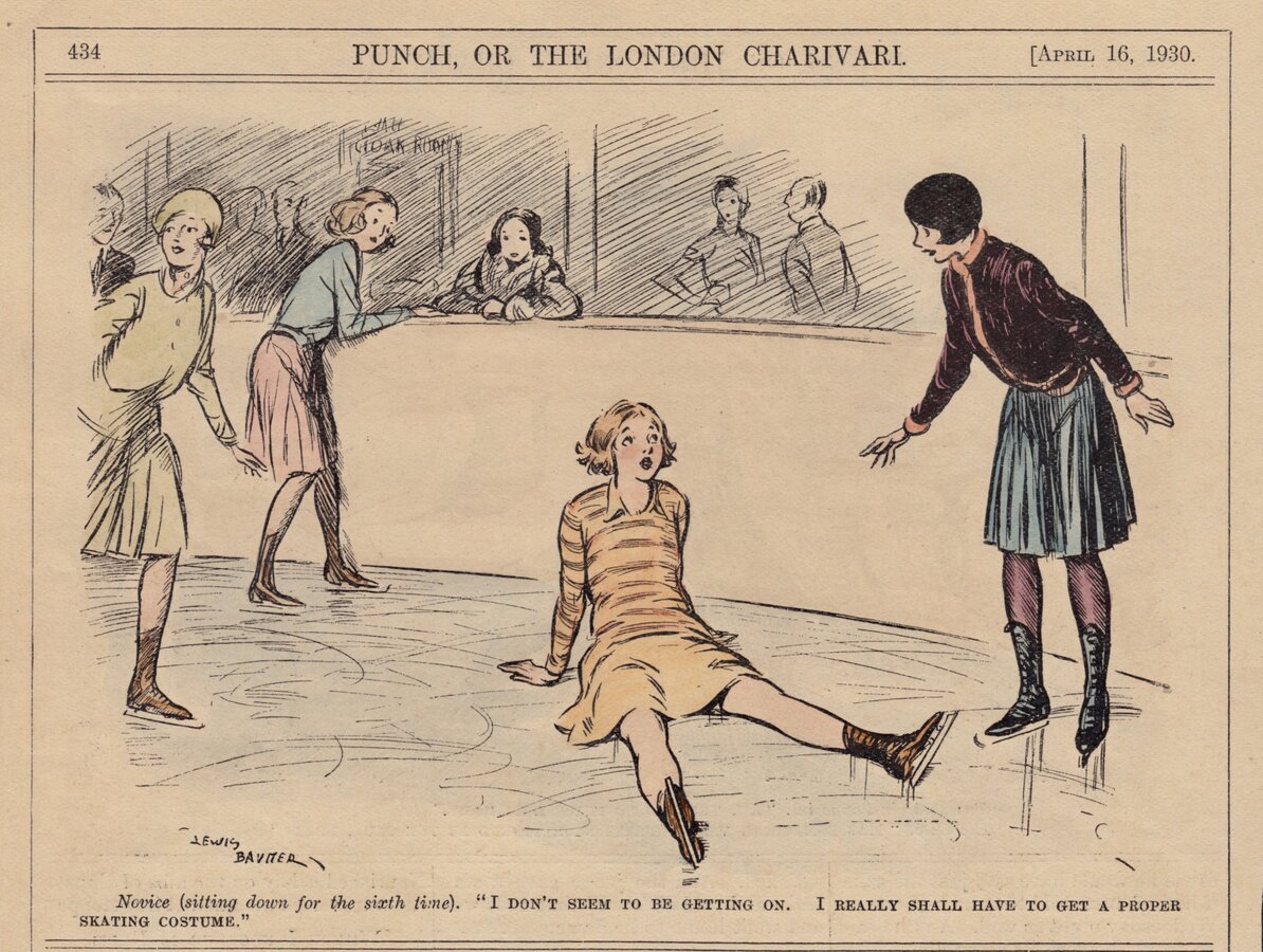 Novice (sitting down for the sixth time). "I DON'T SEEM TO BE GETTING ON. I REALL SHALL HAVE TO GET A PROPER SKATING COSTUME."