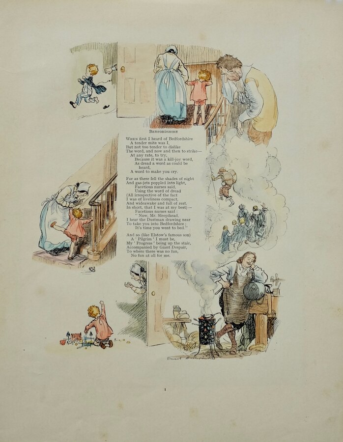 From Mr. Punch's County Songs by E V Lucas illustrated by Ernest H Shepard. Hand coloured. SPECIAL OFFER MOUNT OPTION AVAILABLE ON THIS ITEM AT CHECKOUT FOR UK CUSTOMERS.