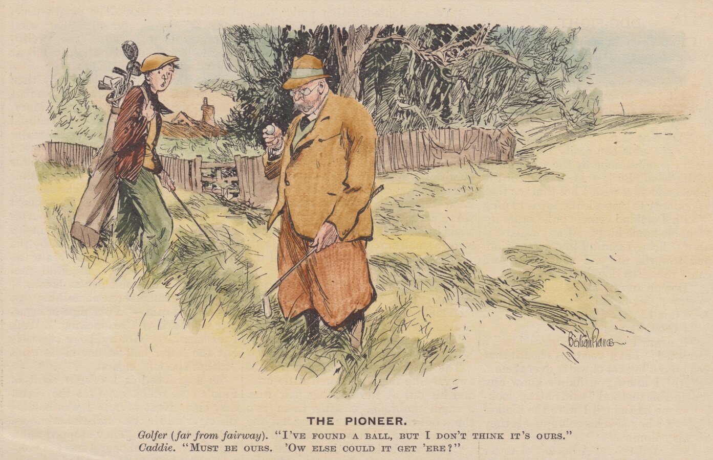 Golfer (far from fairway). "I'VE FOUND A BALL BUT I DON'T THINK ITS OURS."