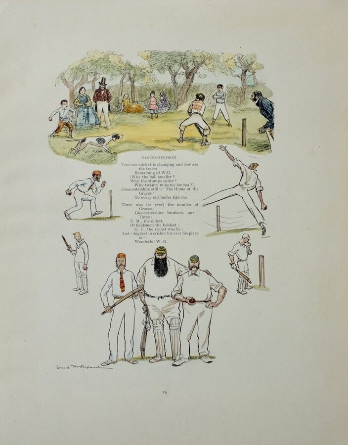 Gloucestershire poem - "the home of the Graces". From Mr. Punch's County Songs by E V Lucas illustrated by Ernest H Shepard. Hand coloured.