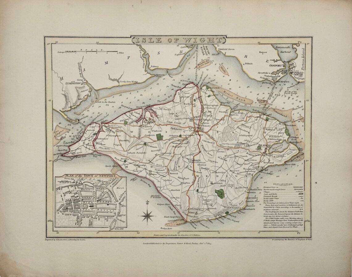 Engraved by John Roper (1771-1810), a London engraver and copperplate printer trading from New Street Square from 1797 until his death in 1810. His widow, Mary Roper, continued the business at the same address until at least 1846. This series of maps, most drawn by George Cole, were intended to accompany The Beauties of England and Wales. The maps were not actually published with this work but first issued in parts as a separate series between 1804 and 1810 and first appearing in atlas form in The British Atlas published by Vernor Hood & Sharpe (& nine other publishers) in 1810. The maps were re-issued in several publications including Dugdale's Curiosities of Great Britain until 1843. Their final appearance was by lithographic transfer in Collins' railway and pedestrian atlas… published by Darton and Co. in 1858.