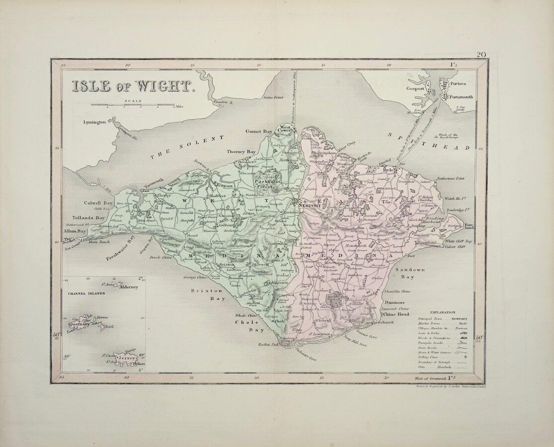 This map of the Isle of Wight is from the 1846 edition of Dugdales Curiosities. Good example in original wash hand colour.