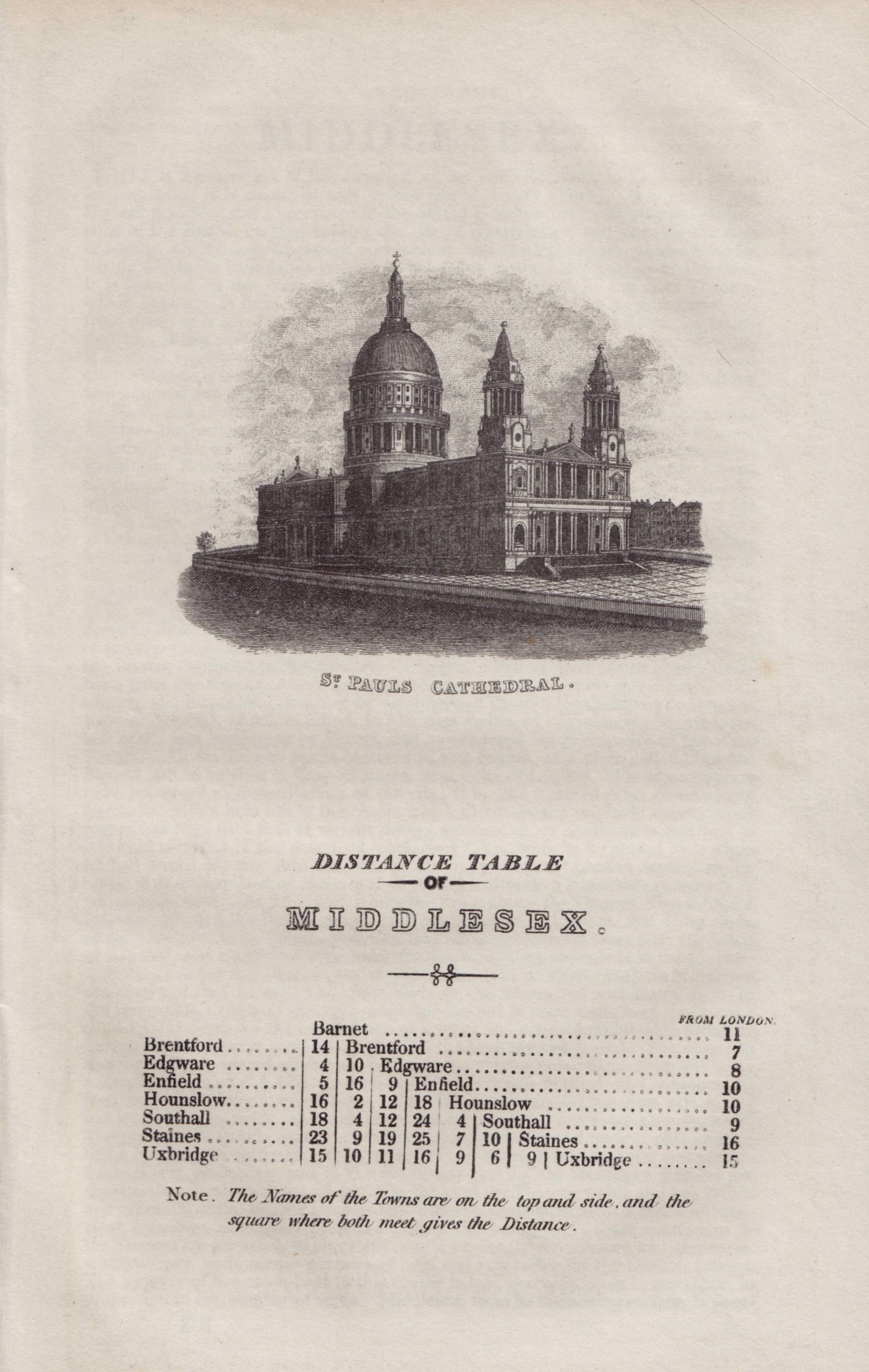 Small left margin. A good example in original hand colour and including separate distance tables with vignette of St. Paul’s Cathedral and 52 pages of original text description of the county.