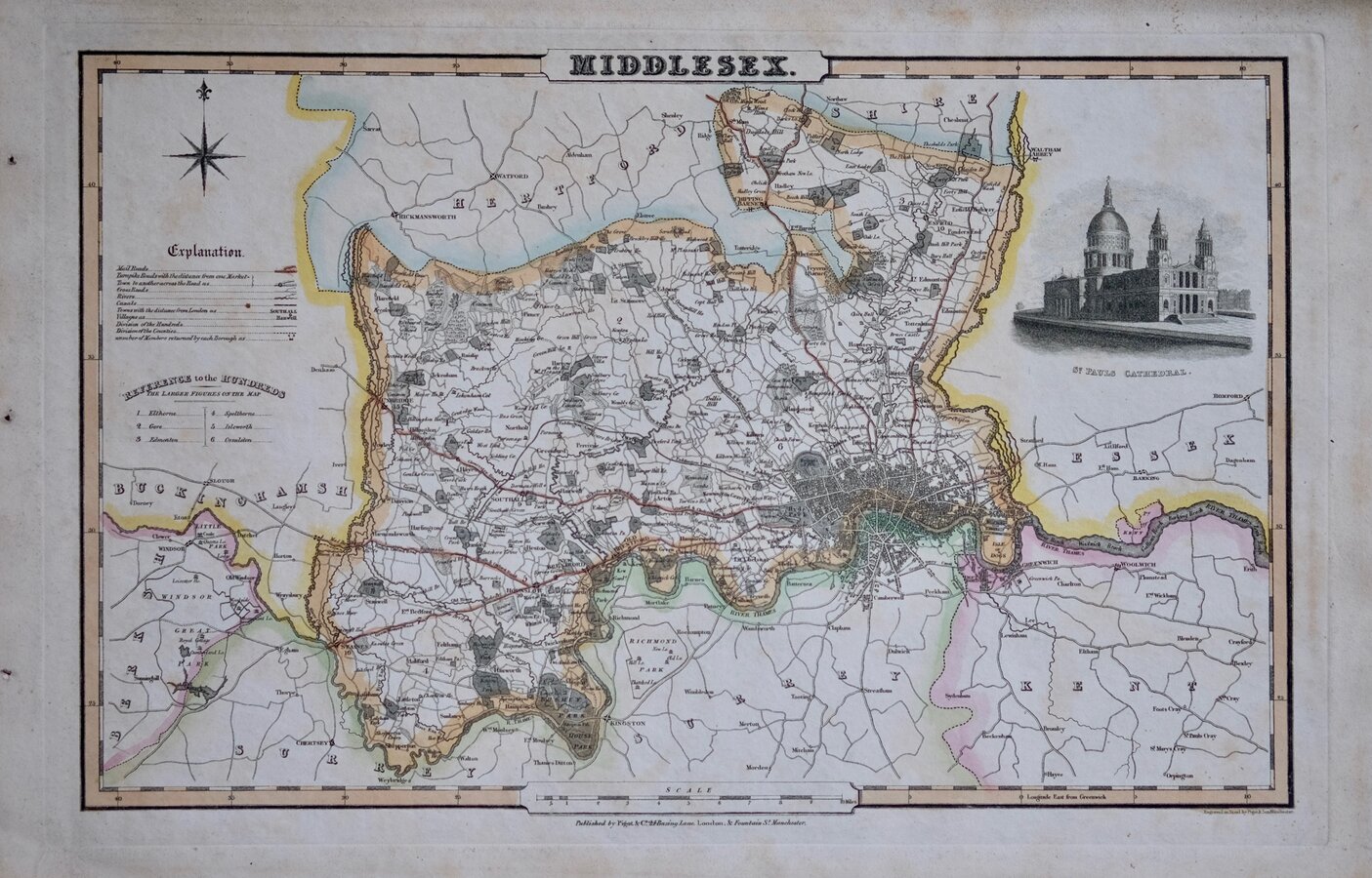 Good example in original hand colour from the first edition published in Pigot & Co's British Atlas the First Part comprising London and the home counties issued without title page or text in 1826.