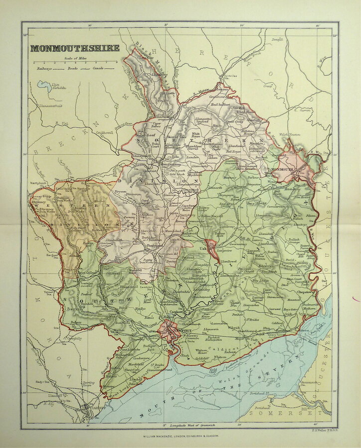 Lithograph printed map from an engraving by Francis Sidney Weller (1849-1910), son of mapmaker Edward Weller (1819-1884). Published by William Mackenzie in The Comprehensive Gazetteer of England and Wales issued in parts from c.1891-1895. The plate from which the lithograph was taken was never used for direct intaglio printing. The map is based on the New Series One Inch Ordnance Survey and has been overprinted in colours showing the county divided into administrative units.