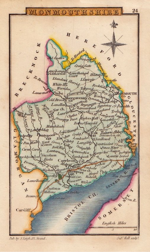 Miniature map engraved by Sidney Hall and first published in Leigh's New Pocket Atlas of England and Wales in 1820. The little atlas was popular running to ten editions until the final editions in 1842 & 3 published by George Biggs.