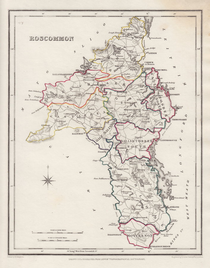 County map drawn by Roger Creighton and engraved by John Dower for publication in Samuel Lewis's Atlas of the Counties of Ireland published to accompany his Topographical Dictionary in 1846. Original hand outline colour. Liht waterstain top rigtht corner.