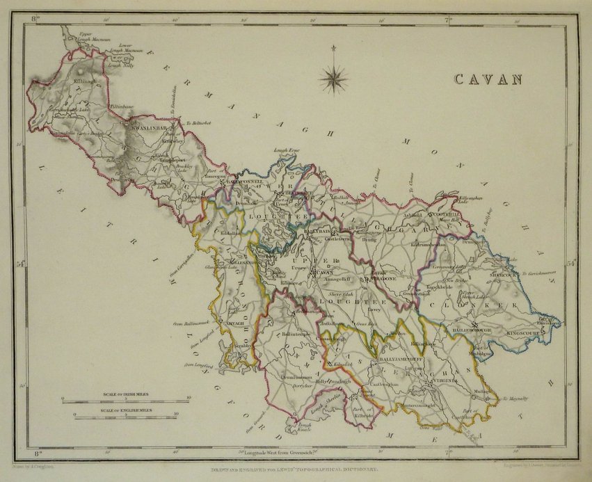 County map drawn by R. Creighton and engraved by J. Dower for publication in Lewis's Atlas of the Counties of Ireland published in 1846 to accompany his Topographical Dictionary.