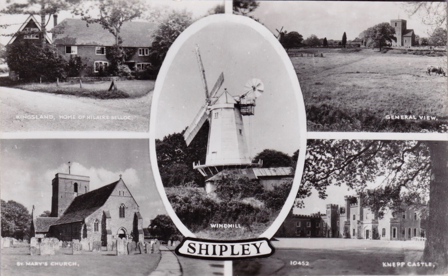 Windmill. Kingsland, home of Hillaire Belloc.  General view. St. Mary's Church. Knepp Castle.