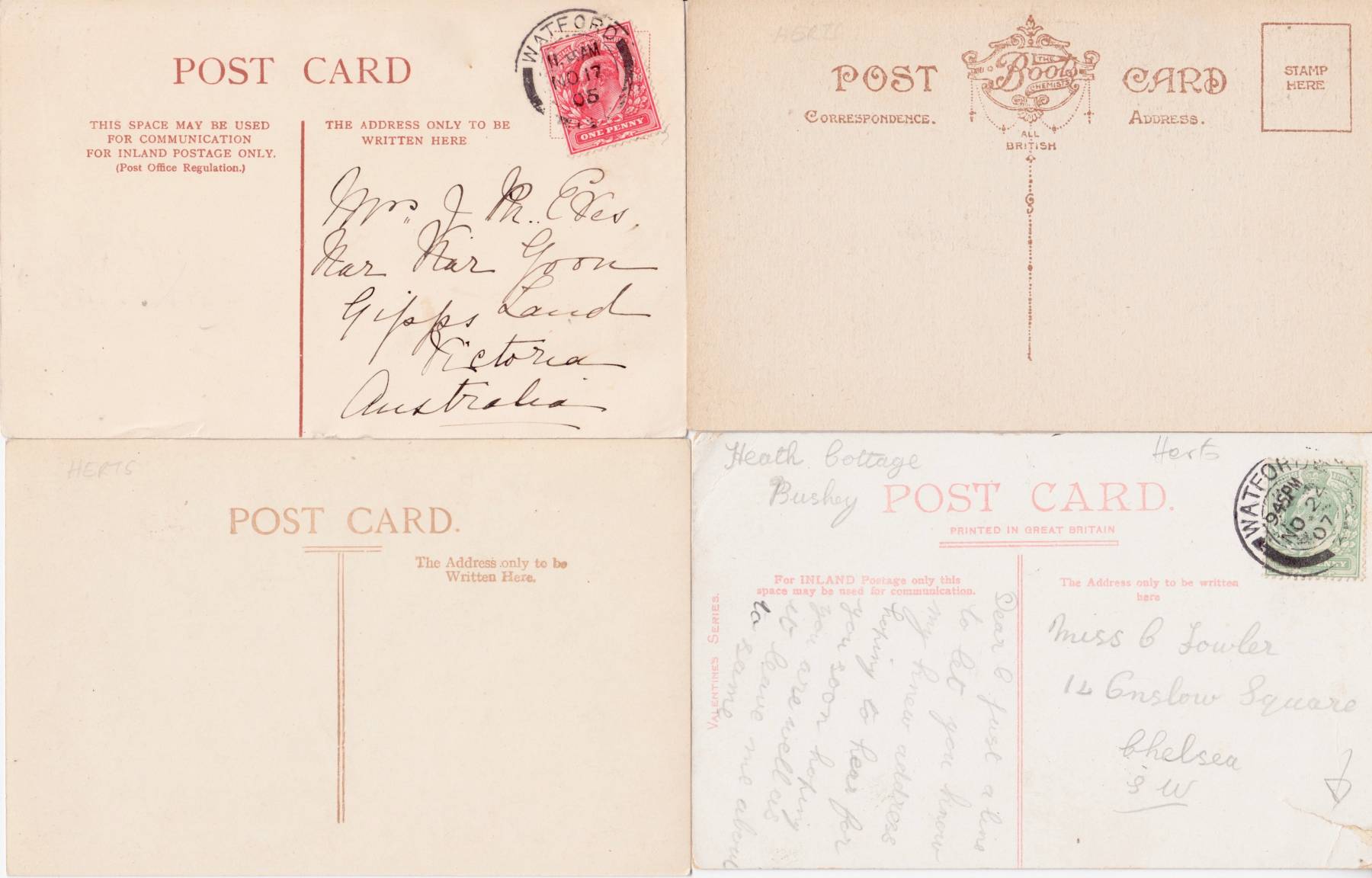 Four postcards.