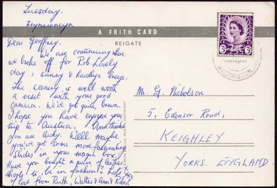 Used postcard. 3d. Stamp Elizabeth II Wilding portrait Dragon of Wales and leek leaves verso.