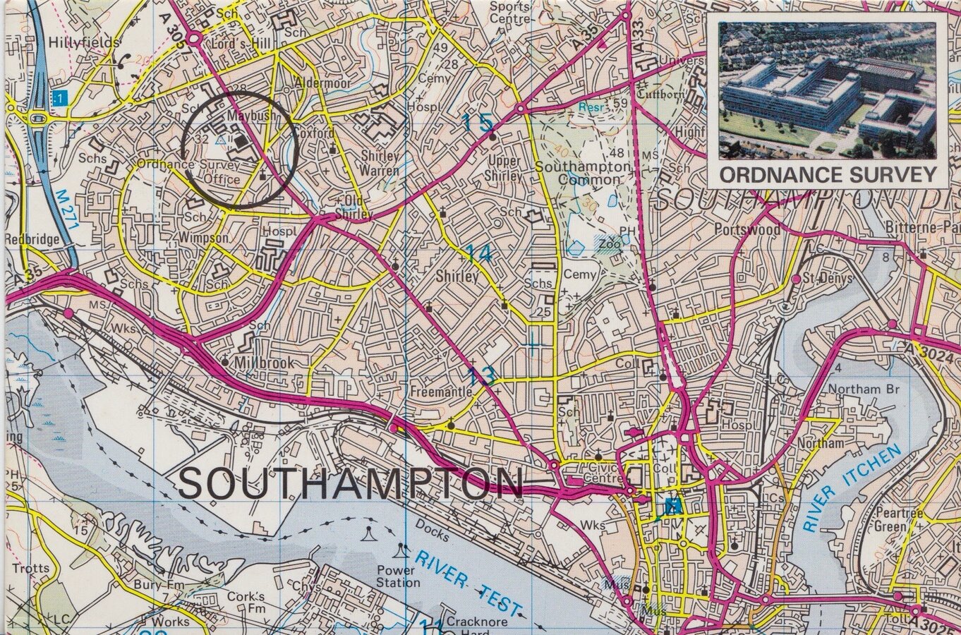 Extract from Landranger 1:50 000 series sheet 196. Ordnance Survey Offices ringed and with inset of aerial view of Ordnance Survey Offices. Published by The Ordnance Survey 1981. Unused, as new.