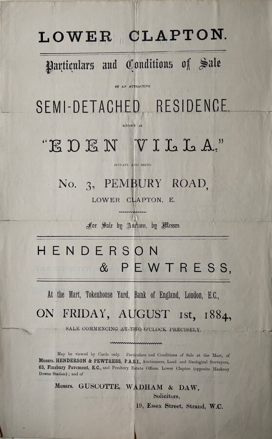 SEMI-DETACHED RESIDENCE known as EDEN VILLA, No. 3 PEMBURY ROAD.