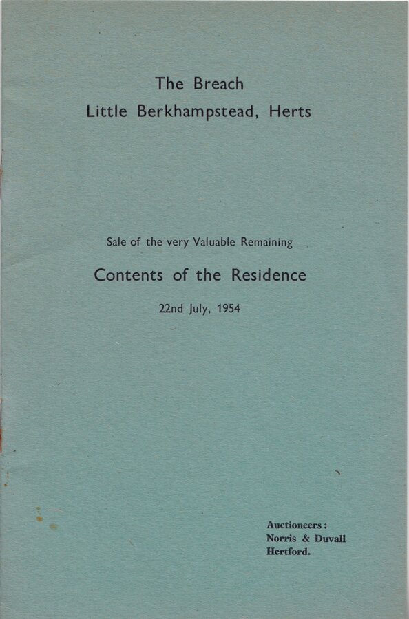 The Breach Little Berkhampstead, HertsContents auction sale catalogue 22nd July 1954. Paper covers 14x22cm. 20 pages, 462 lots.Fine condition.