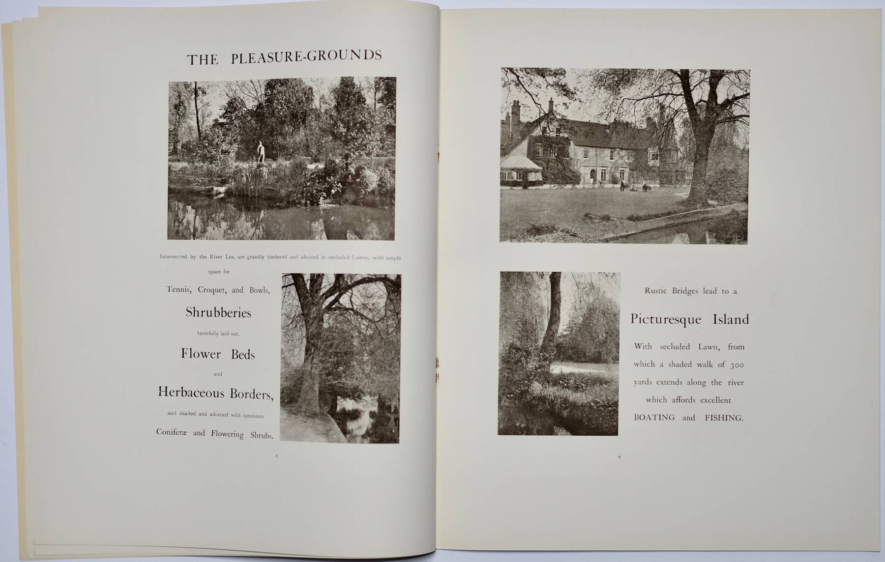 Ppaer covers (28x34cm). Stapled binding 16 pages with 8 b/w photographs. Full page coloured lithograph plan of the estate.