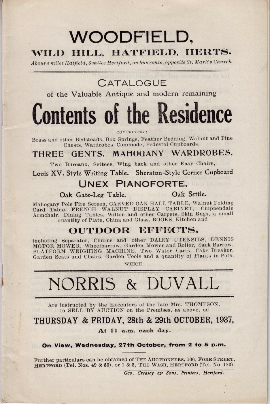 Contents Auction sale Norris & Duvall Thursday & Friday, 28th & 29th October 1937.October 1937.