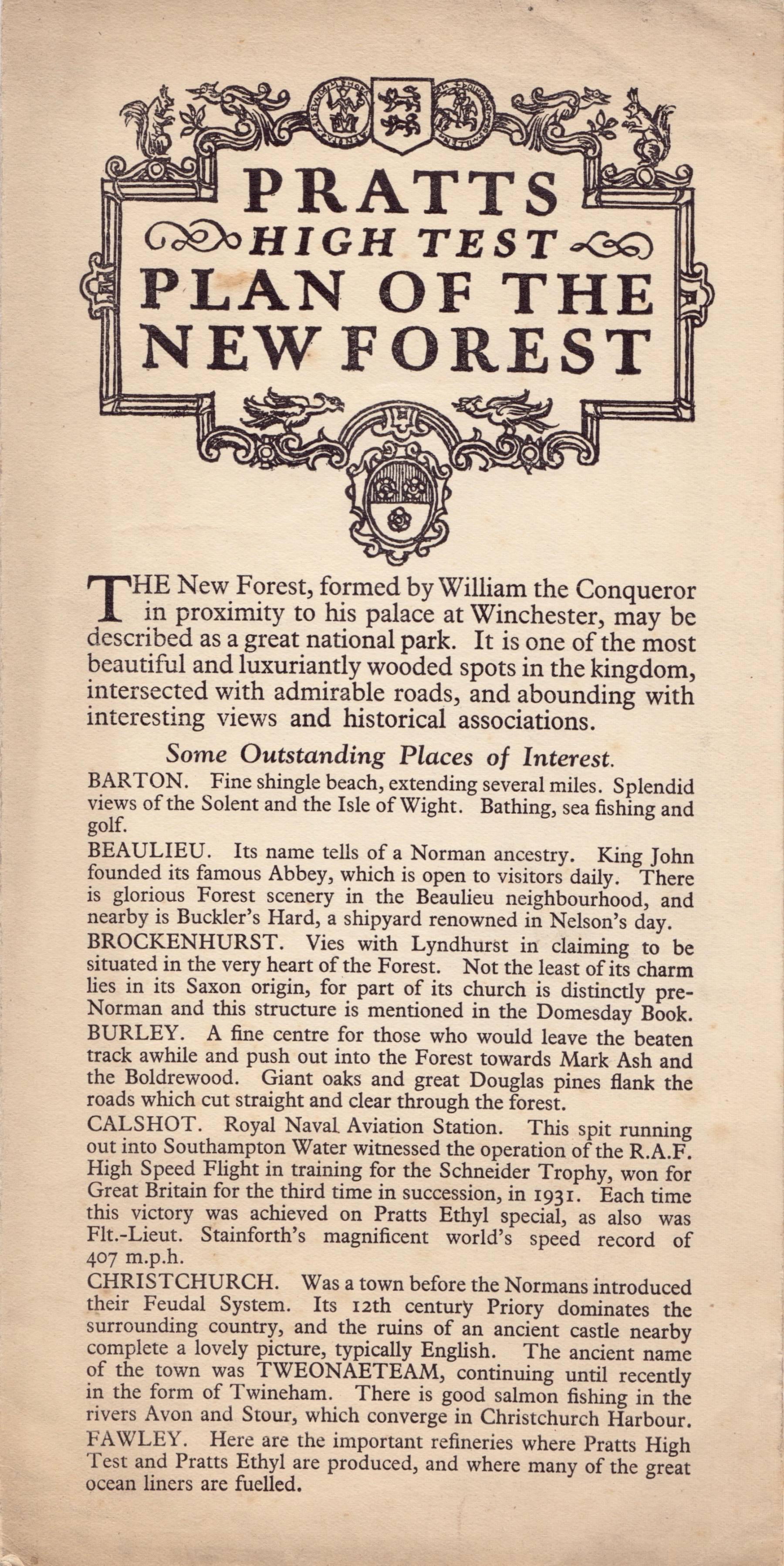 PRATTS HIGH TEST PLAN OF THE NEW FOREST