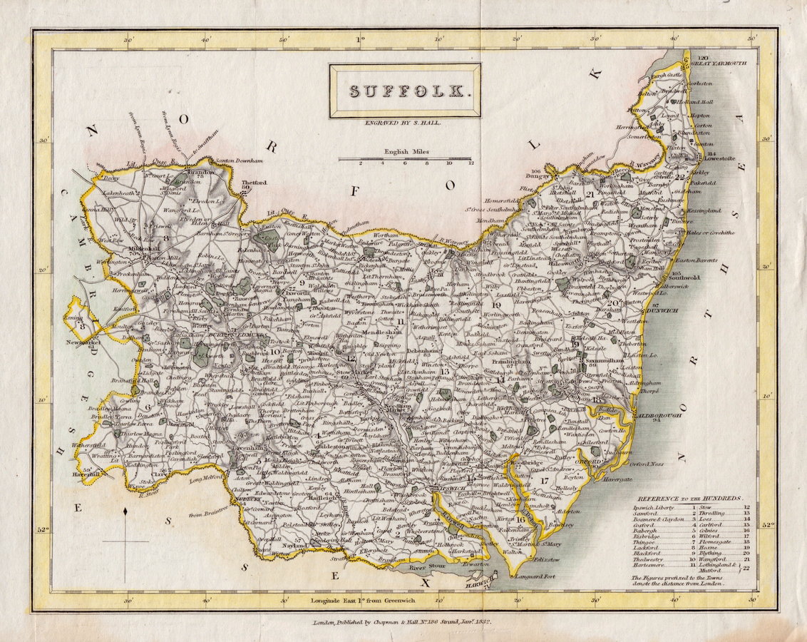 It has been assumed that all the maps for this series were engraved by Sidney Hall (1788?-1831), but Sidney Hall married Selina Price (1780?-1853) in 1821 and his engraving business was continued by his wife after his death in 1831 who signed her maps "S.Hall.". She was clearly a highly skilled engraver, presumably trained by her husband, and stylistically there is little difference in their work. Sidney Hall usually signed his maps “Sidy. Hall” so it is reasonable to assume that maps produced around the time of his death signed “S.Hall” are by Selina Hall. She is recorded as an engraver on the 1842 Census, living in Bury Street with a servant. She was buried 23 Nov.1853 at St. George, Bloomsbury. In her will, she left her books, maps etc., to her nephew Edward Weller (1819-1884) who took over the Bury Street premises and continued the business.