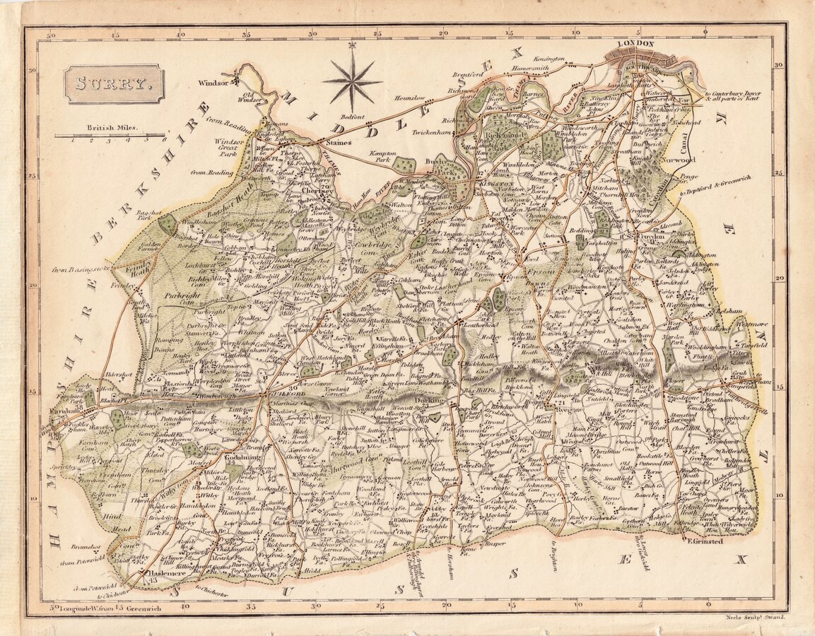 Drawn and engraved by Samuel John Neele, this series were based on John Cary's 'quarto' maps of 1793. The early publication of this series is complex with loose issues and parts issues for many counties from about 1812. The first main publication containing the complete set of county maps was The New British Traveller; or, modern panorama of England and Wales...By James Dugdale... published about 1818 by J & J Cundee. The map appeared in three further issues under different titles in 1819 and 1820.