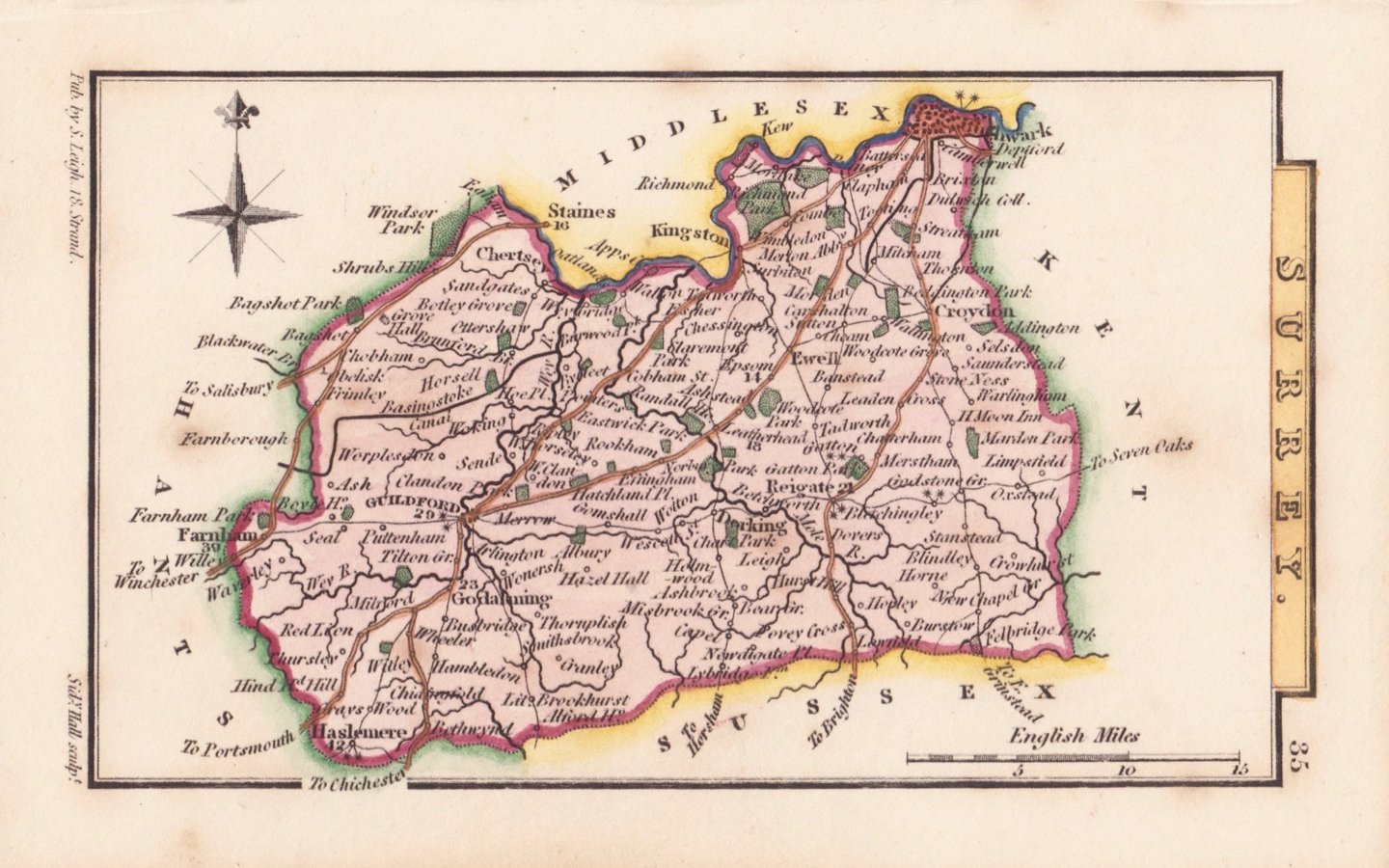 Miniature map engraved by Sidney Hall and first published in Leigh's New Pocket Atlas of England and Wales in 1820. The little atlas was popular running to ten editions until the final editions in 1842 & 3 published by George Biggs.