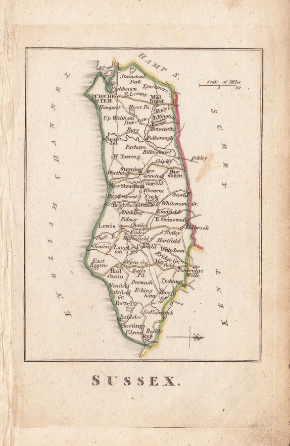 RARE "UPSIDE-DOWN" SERIES. THE ONLY MAP OF SUSSEX WITH NORTH TO THE RIGHT.