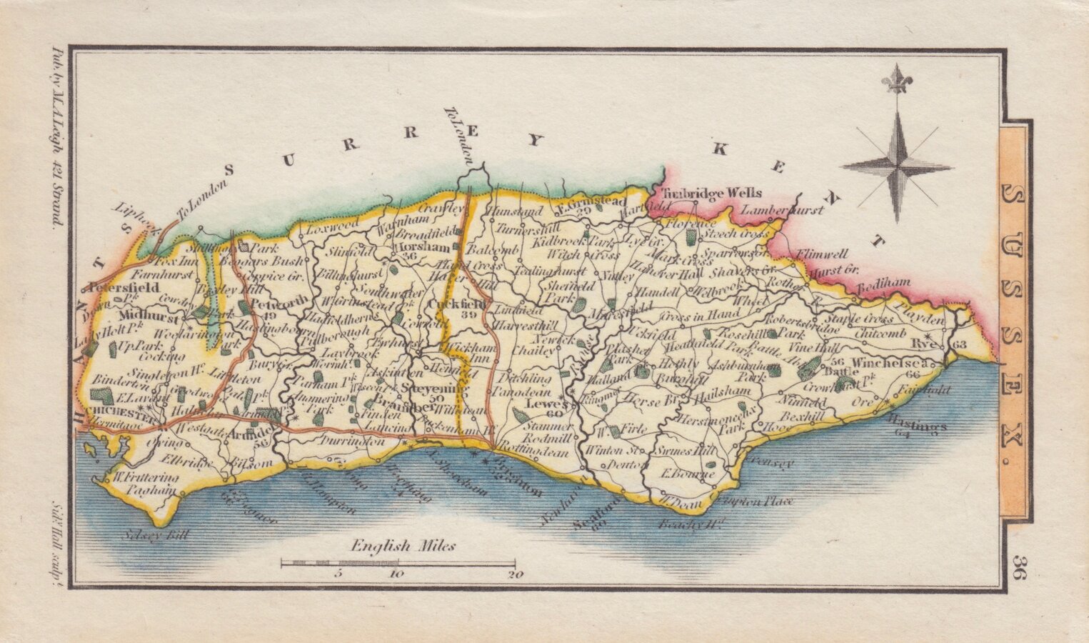 Miniature map engraved by Sidney hall and first published in Leigh's New Pocket Atlas of England and Wales in 1820. The little atlas was popular running to ten editions until the final issues in 1842 and 1843 by George Biggs.