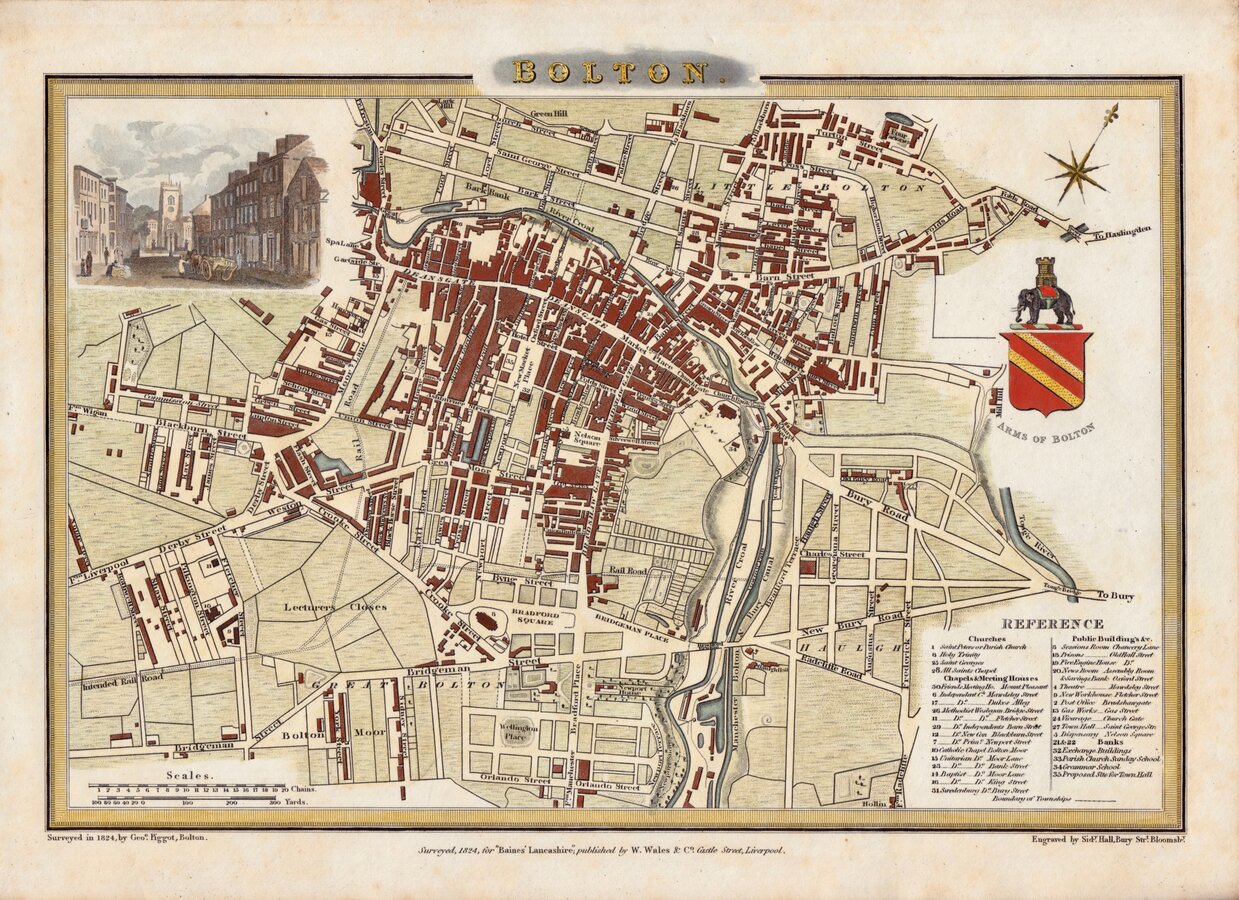 Surveyed in 1824, by Geo.e Piggot, Bolton. | Engraved by Sid.y Hall, Bury Str.t Bloomsb.y