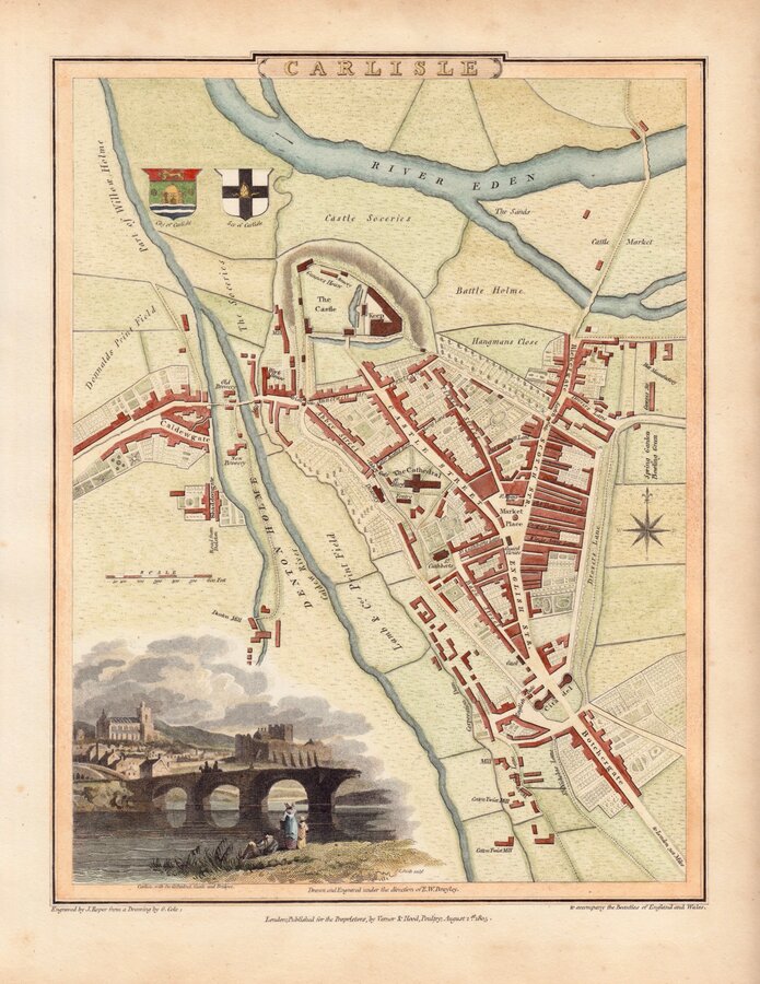 Good example of the plan of Carlisle with vignette engraved by Joseph Clarendon Smith (1778-1810).