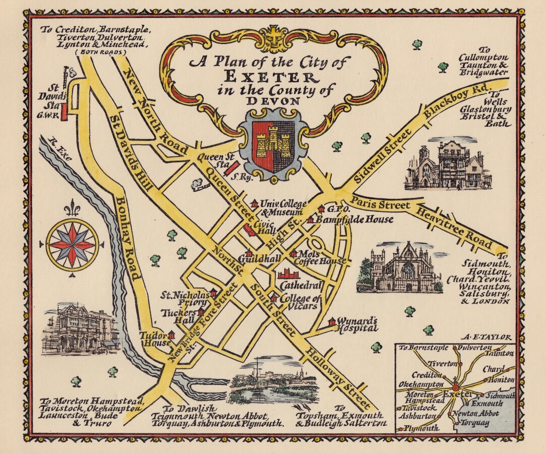 Drawn by Alfred Edward Taylor (1887-1959) and published in Pictorial Britain and Ireland...Designed by Alfred Taylor Described by S.P.B.Mais...H.K. McCann Company Limited, for Anglo-American Oil Company Ltd., London 1936.