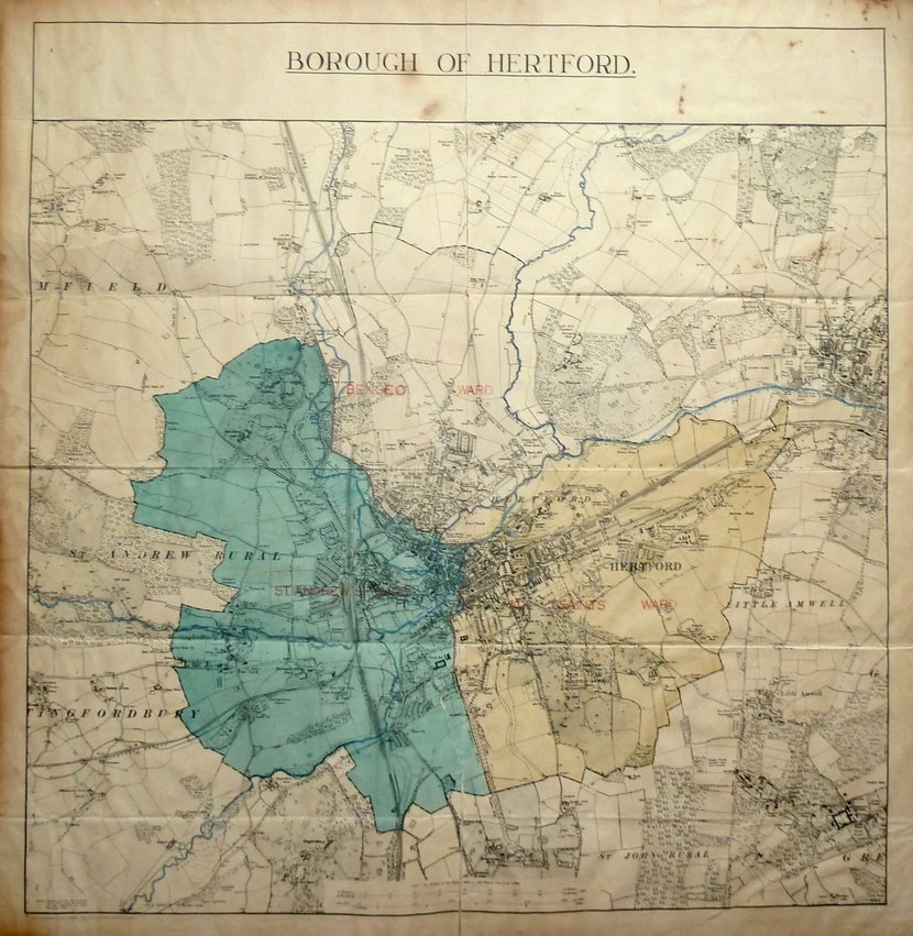 Several old repairs to tears and some staining particularly to margins but an uncommon publication for official use centred on Hertford town.