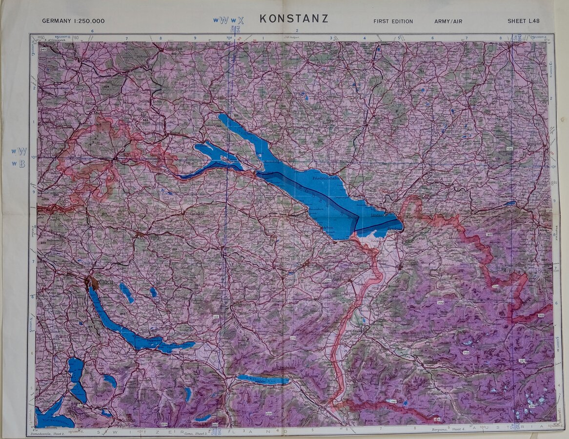KONSTANZGERMANY 1:250,000 FIRST EDITION ARMY/AIR SHEET L.48Paper. Folds. Trimmed.