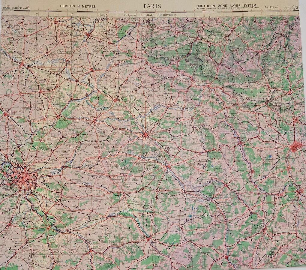 PARIS NORTHERN ZONE LAYER SYSTEM (LAYER STEPS CORRESPOND TO THSE ON THE R.A.F. CONVENTIONAL SIGN CARD) 2nd. Edition Linen Backed. Folds. Heavily cropped with loss to map and border information.