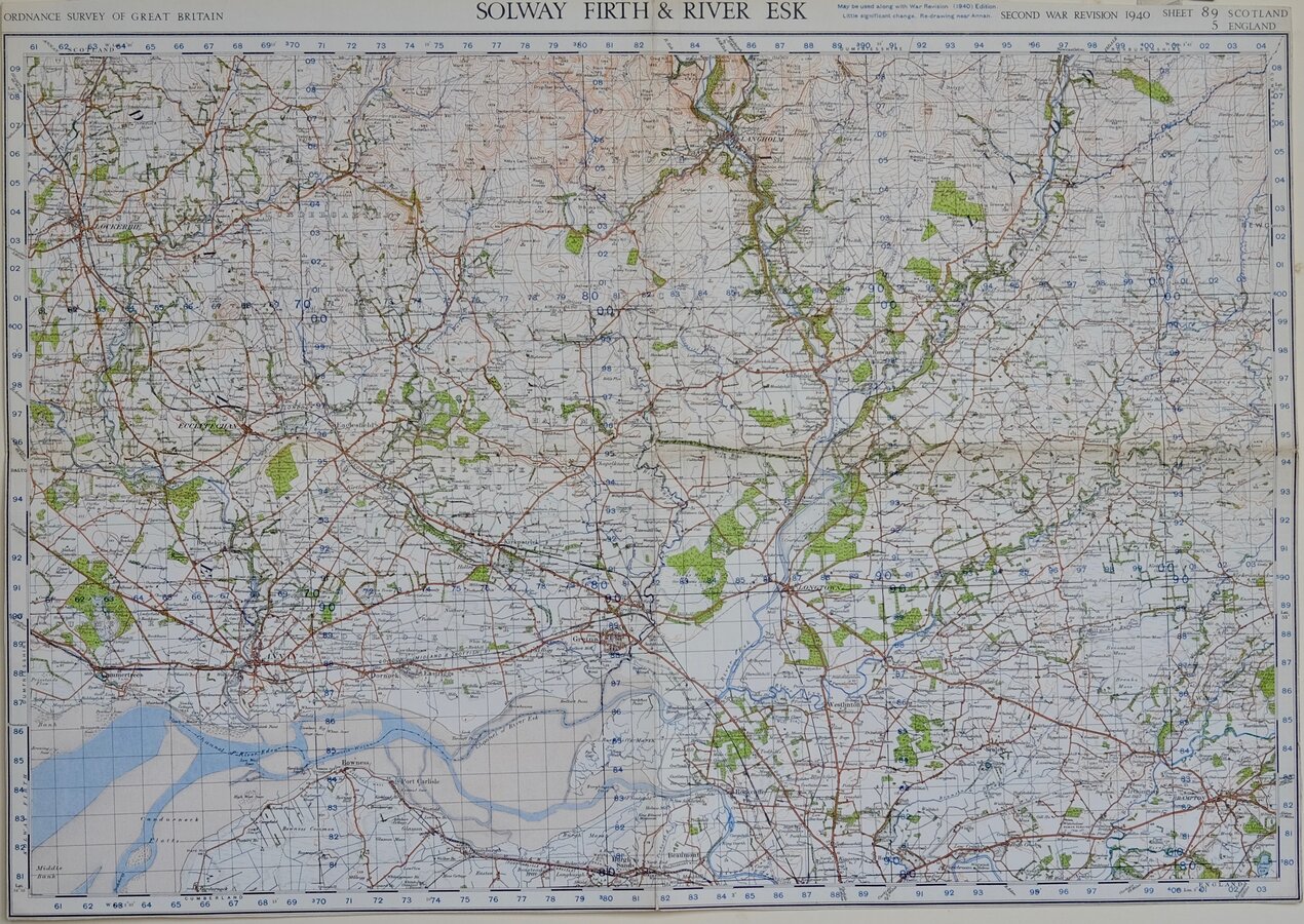 SOLWAY FIRTH & RIVER ESK ORDNANCE SURVEY OF GREAT BRITAIN. POPULAR EDITION STYLE SECOND WAR REVISION 1940 SHEET 86 SCOTLAND 5 ENGLAND Linen backed. Folded. Trimmed to margins.