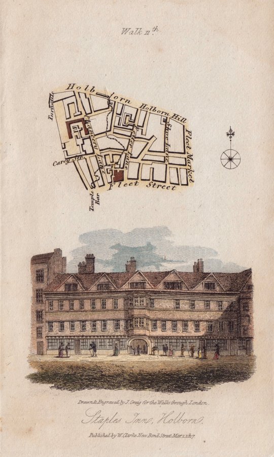 Plan of the Chancery between Holborn Hill and Fleet Street, Chancery Lane and Fleet Market with vignette of Staple Inn on the South side of Holborn, the last surviving Inn of Chancery.