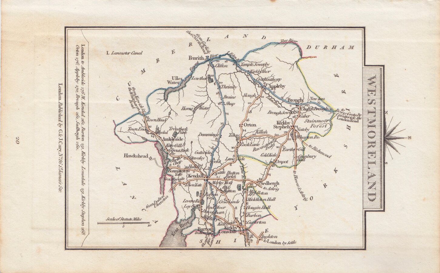 The earlier versions were engraved with North to the right, this was the only one to be engraved with North to the top of the page with the title, list of distances from London and imprint engraved sideways.