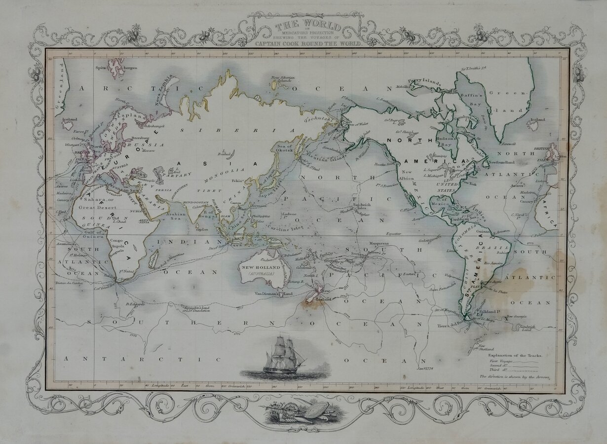 THE WORLD ON MERCATORS PROJECTION SHEWING THE VOYAGES OF CAPTAIN COOK ROUND THE WORLD.
