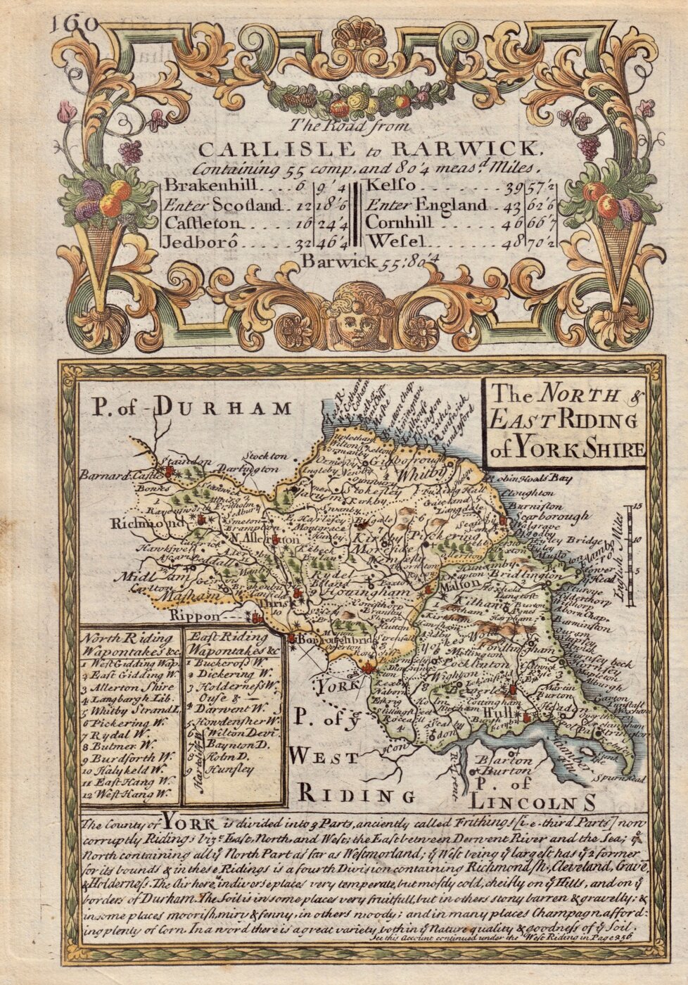 Map set below a decorative cartouche containing the title and details of the road from Carlisle to Berwick.