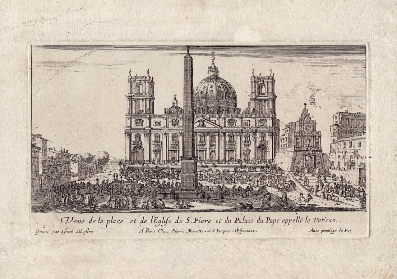Veuë de la place et de l'Eglise de S. Piere et du Palais du Pape appellé le Vatican.