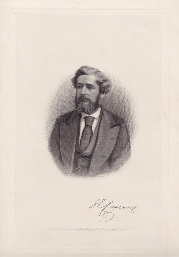J.E.Cussans Presented to the subscribers to the History of Hertfordshire by the Publishers. E.G.Hester Sc. Fine quality stipple engraving of the author of the 3 volume History of Hertfordshire printed on india paper and published in Cussans History in 1881.